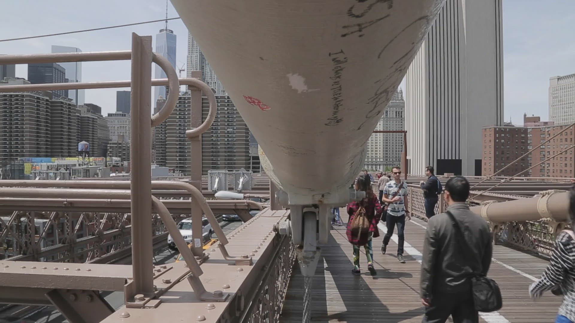 > Shot panning the Oakland Bay Bridge to San Francisco.
