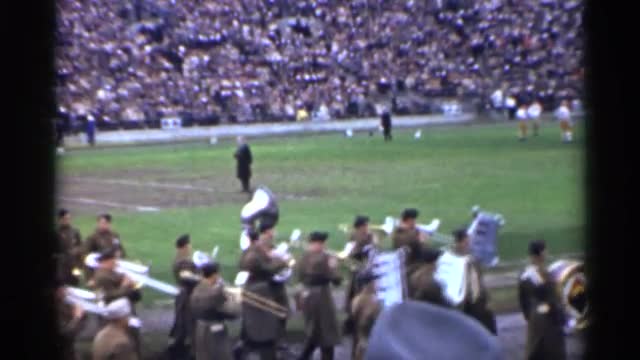 > 1937: Marching band at football game Minnesota versus Notre Dame football game. MINNEAPOLIS, MINNESO