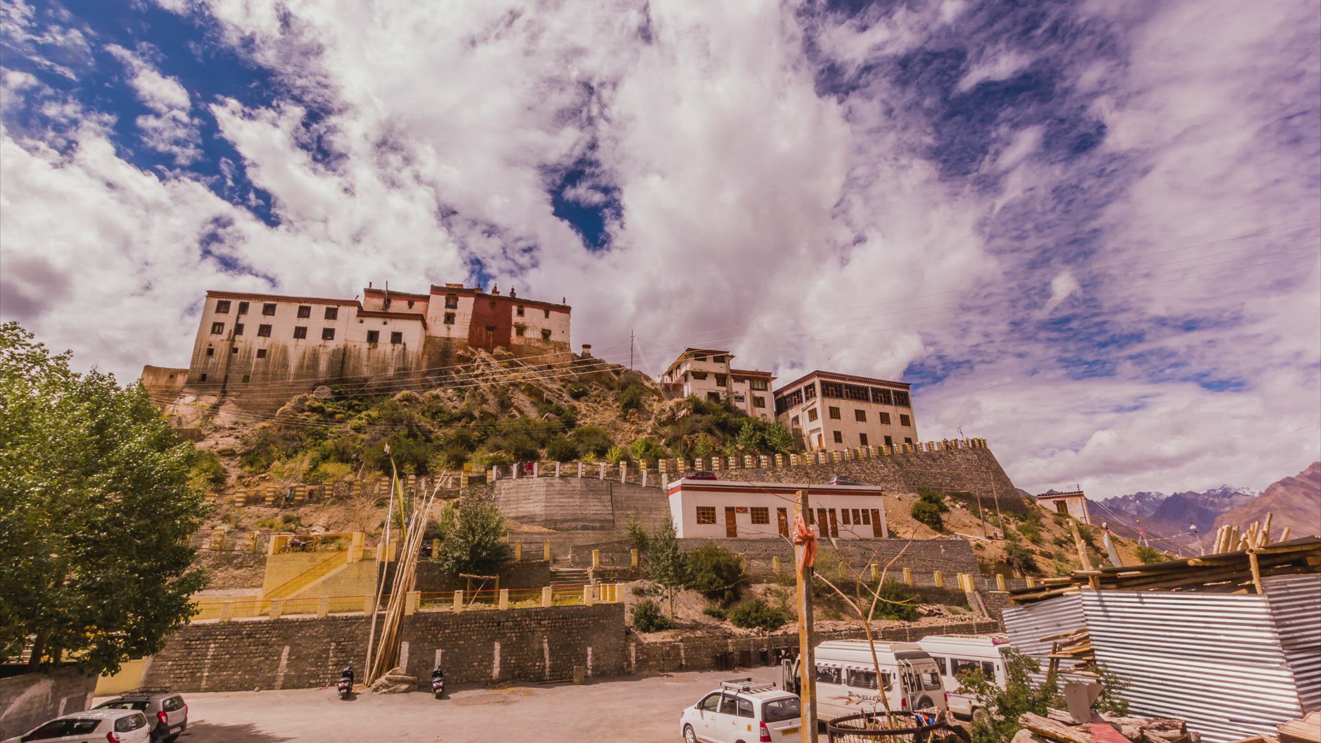 2118274 - Time Lapse of Clouds Passing over Kee Monastery, Spiti Valley, Himachal Pradesh, India