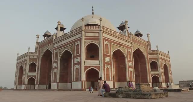 Children wrestle and play in Yamuna river bed near Taj Mahal