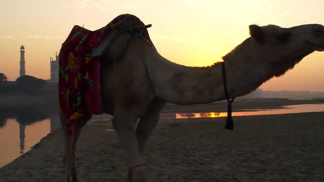 561722 - Taj Mahal and Camel at sunset
