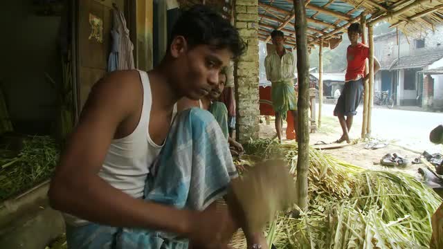 562152 - Indian man working cutting plants