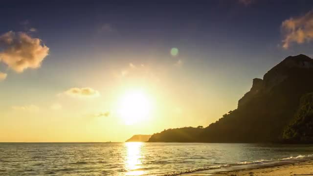 Sea sunrise with mountain on right side time lapse