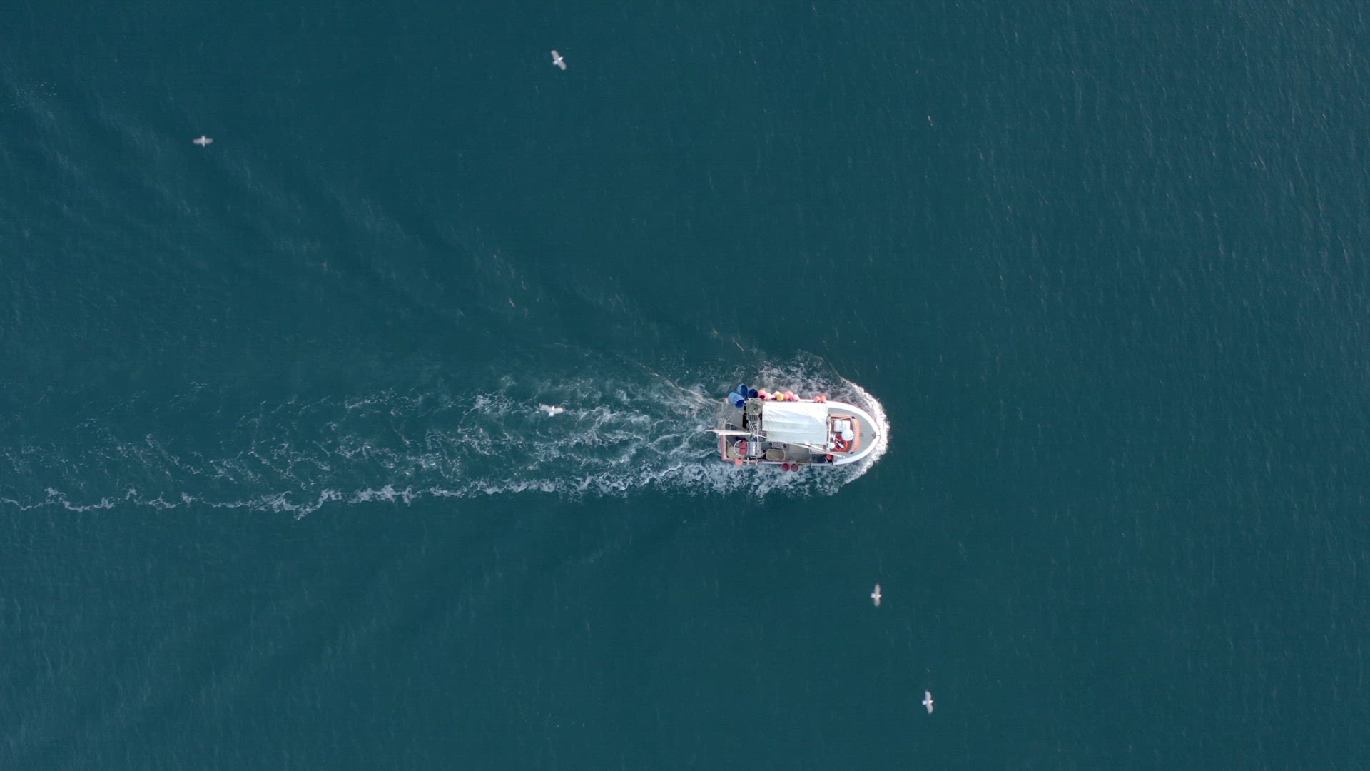 164031 - A fishing vessel navigates just off shore.