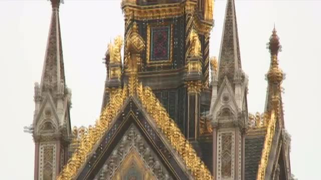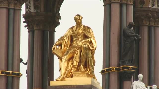 > Tilt up shot of the Peace Monument in Paris, France.