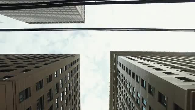 vertical view of modern high rise skyscraper buildings in the city. business district economy development growth background. new york city skyline. Shot on Red Epic.