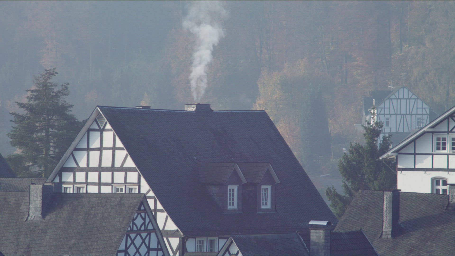 925329 - Morning smoke rising from chimneys in the city