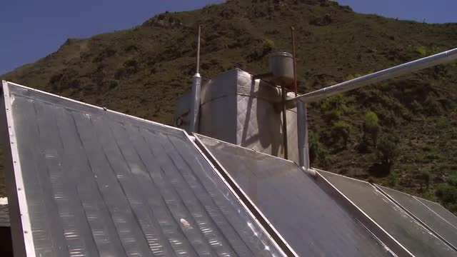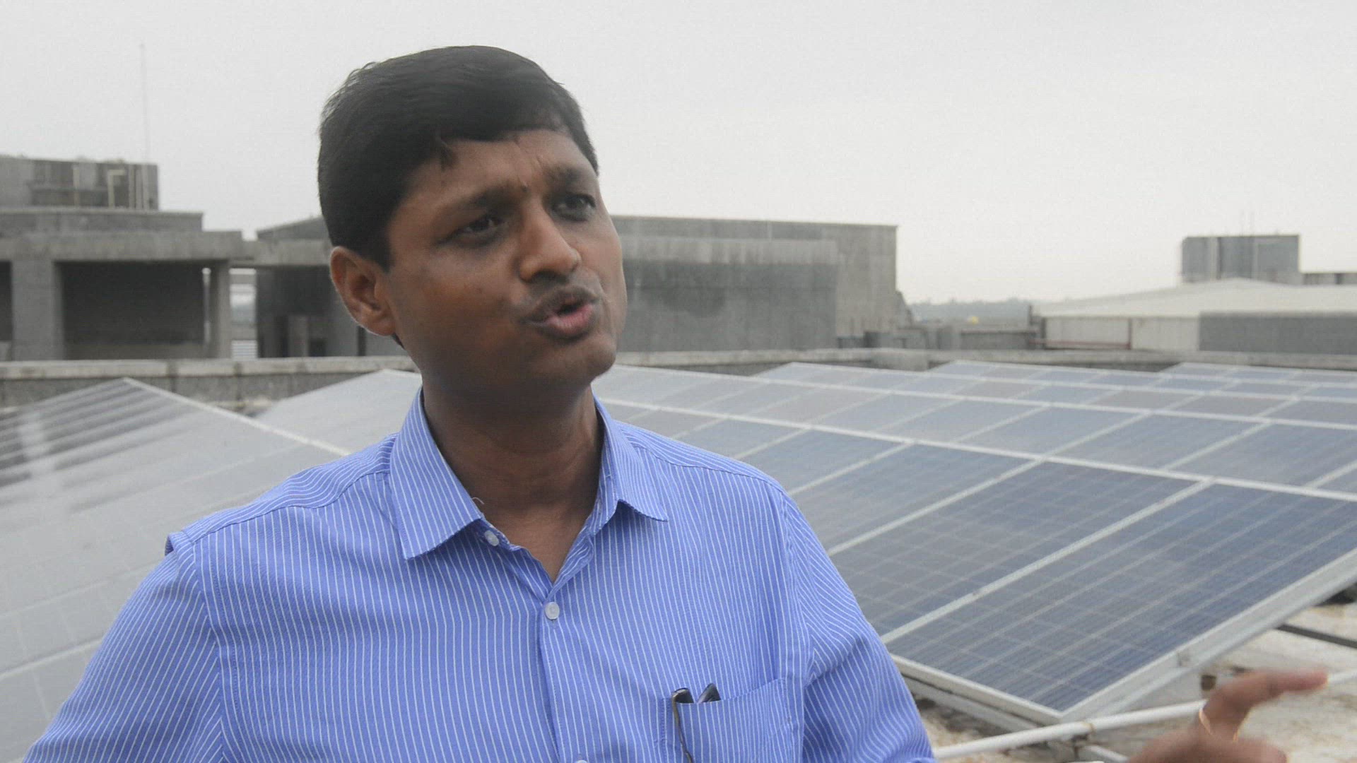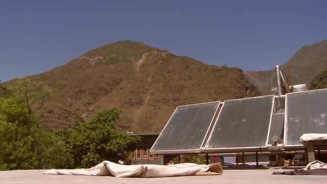 > View of solar panels in a villiage in India