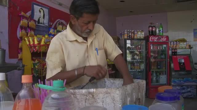 > Shop keeper crushing Ice