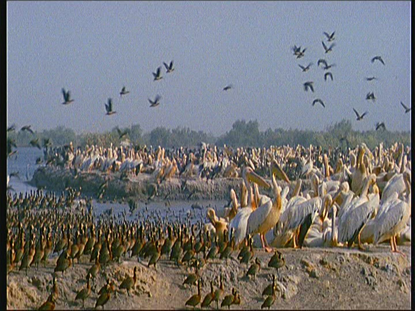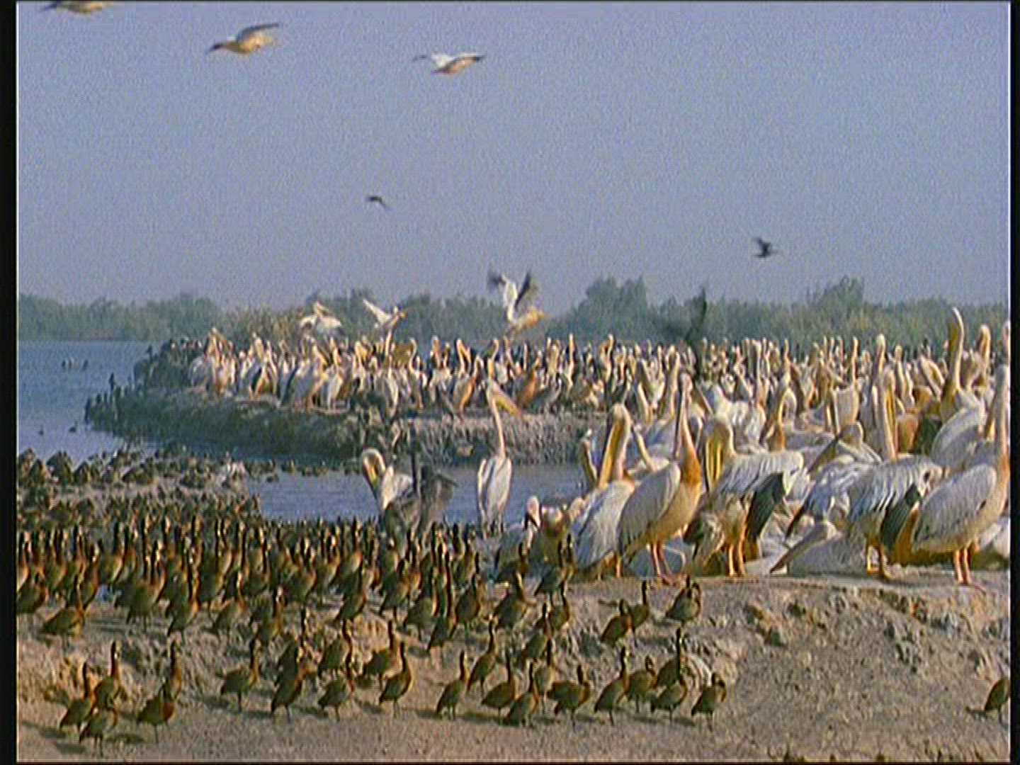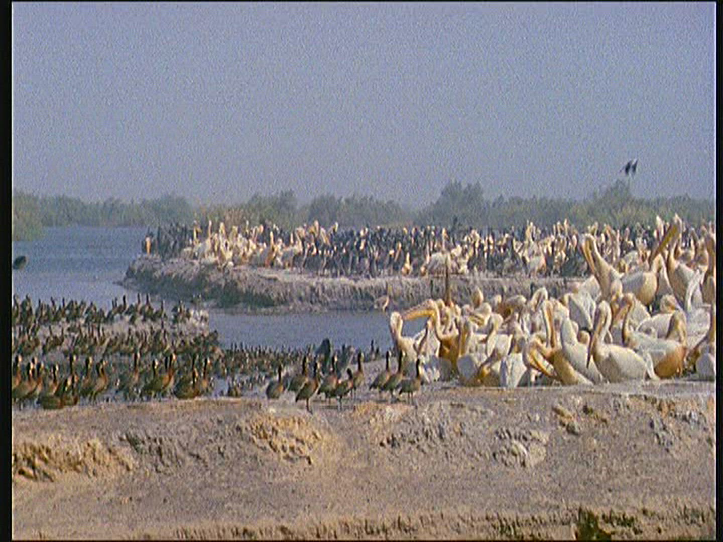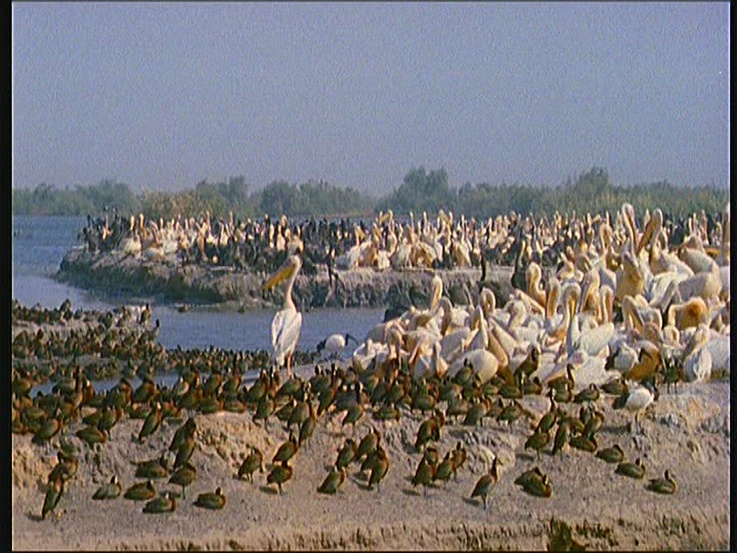 White Wild Goose Swimming in Blue Lake Water in a Sunny Day, 4k Ultra hd