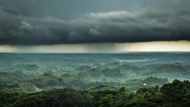 1102725 - Time-Lapse Top of Rainbow Mountain as Rolling Clouds Move In