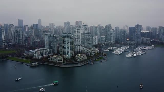 1126522 - Timelapse of Seattle Skyline with Dramatic Cloudy Overcast zoomed in on Skyscrapers