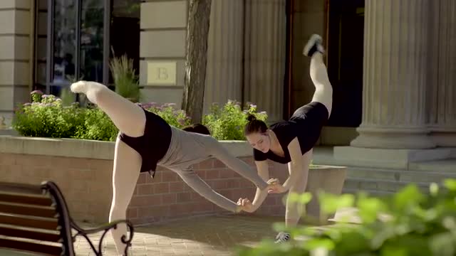 > Ballerinas Practice A Tricky Move Together, They Make A Mistake And Fall, They Laugh (4K)
