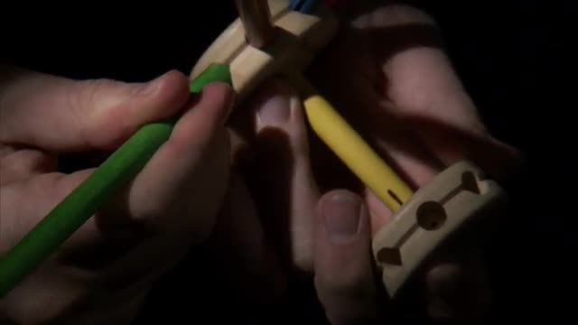 A medium on black of a Tinker Toys being played with and connected.