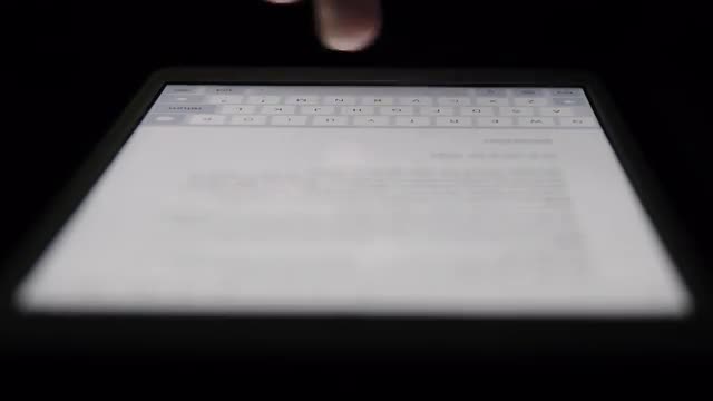 Ungraded: Typing on a tablet computer. User typing text document in English using on-screen keyboard. (av12552u)