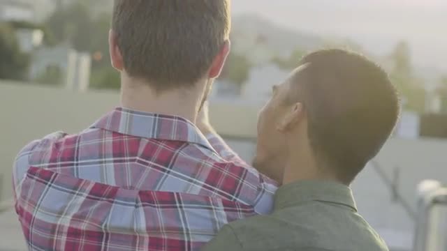 > Cute Couple Hold Hands And Enjoy A Walk Along Boardwalk Next To Beach