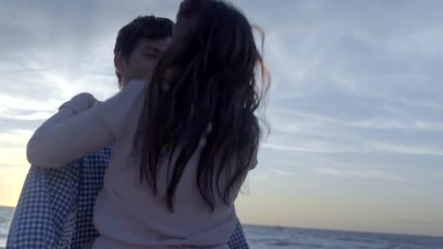 567918 - Young Woman Runs Across Beach, Jumps Into Her Boyfriend's Arms, He Spins Her Around And Kisses H