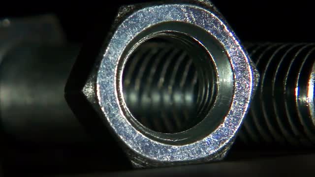 A close up panning shot of a screw and bolt.