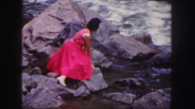 722843 - 1964: a pet cat full of fur cautiously drinking milk from a plate kept on the floor MINNESOTA