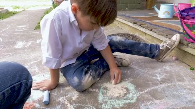 Little Boy Stands Under Tree And Looks Around, Beautiful Lens Flare Slow Motion Shot
