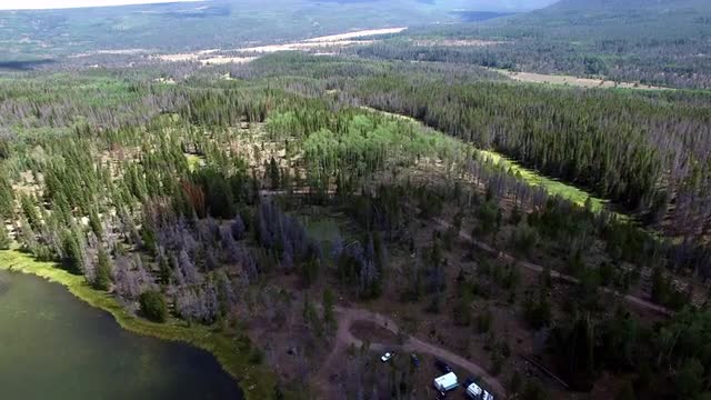 Aerial View. Flying over the green sown field along the road with cars. Aerial drone shot. 4K 30fps