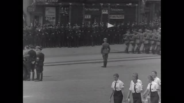 > 1939: Young girl opens front door runs carelessly towards street escape. ATHENS, GEORGIA