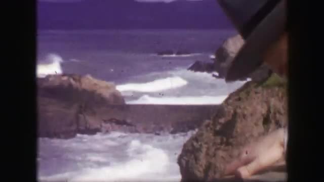 > 1939: Cliff house sutro baths ocean waves crashing on seal rocks beach. SAN FRANCISCO, CALIFORNIA