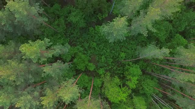 Aerial View. Flying over the forest trees. Aerial drone shot. 4K 30fps ProRes (HQ)