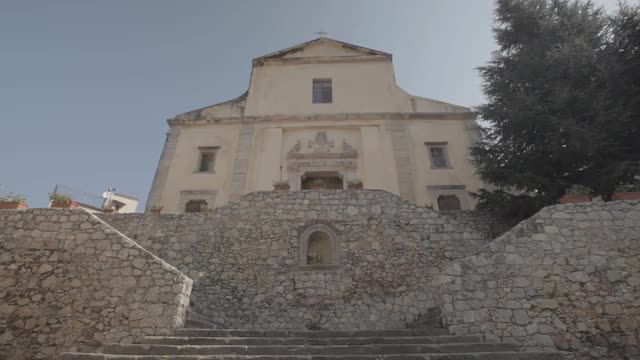 557279 - People Leave Enter the Carmelites Monastery Berdichev Stairs to a Church Building in a Baroque Style