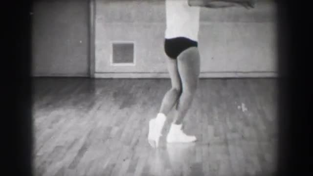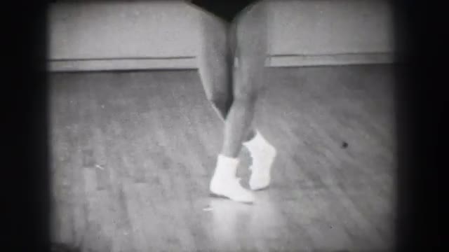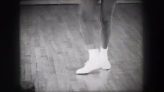> 1966: Jazz dance moves 5 closeup behind kick stepping shuffle slide. NEW YORK CITY