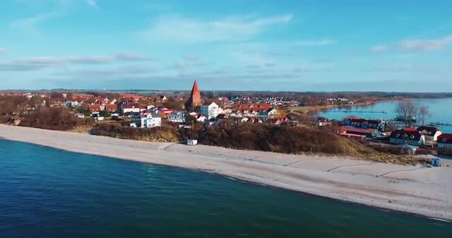 307226 - City At The Sea Wit Pier Fly Over Blue Sky And Water