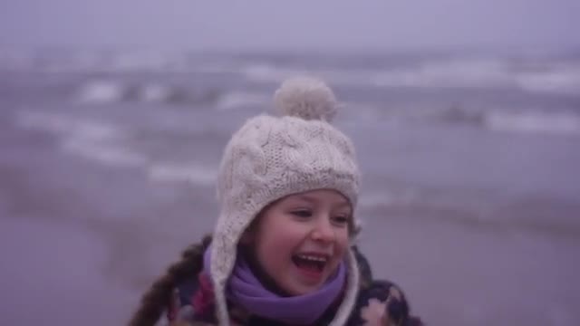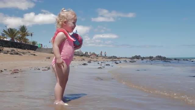 Funny Girl With A Rubber Ring On The Shore
