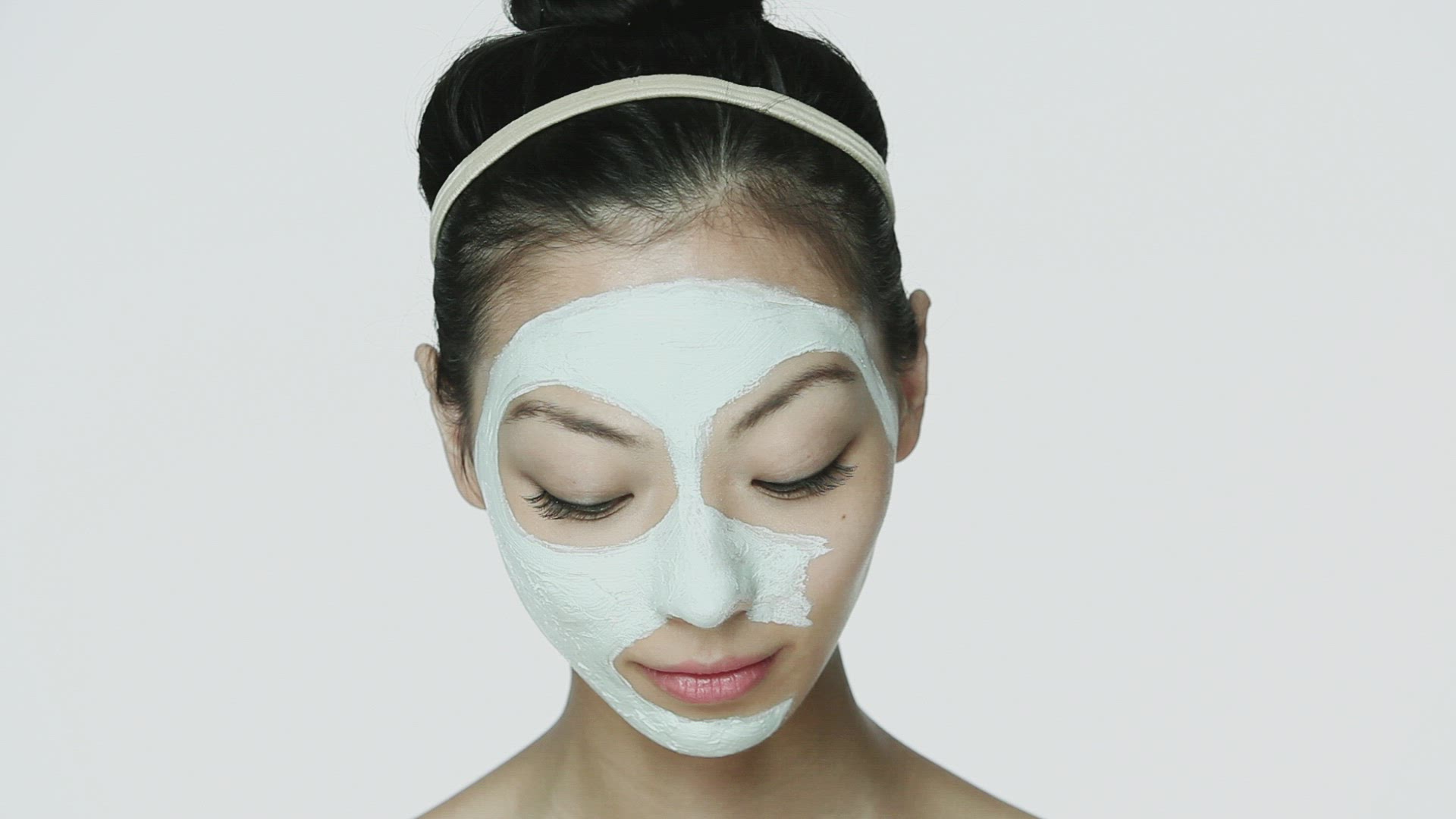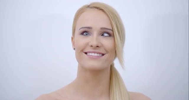 Beautiful healthy smiling woman with fresh skin of face over white background