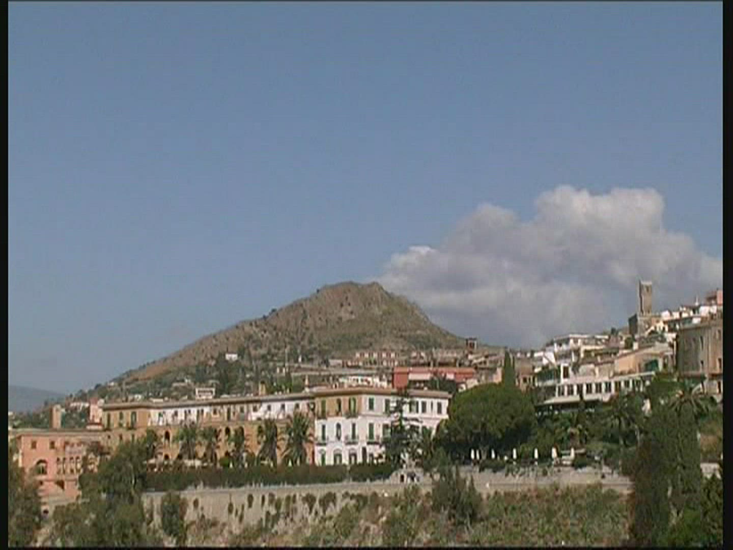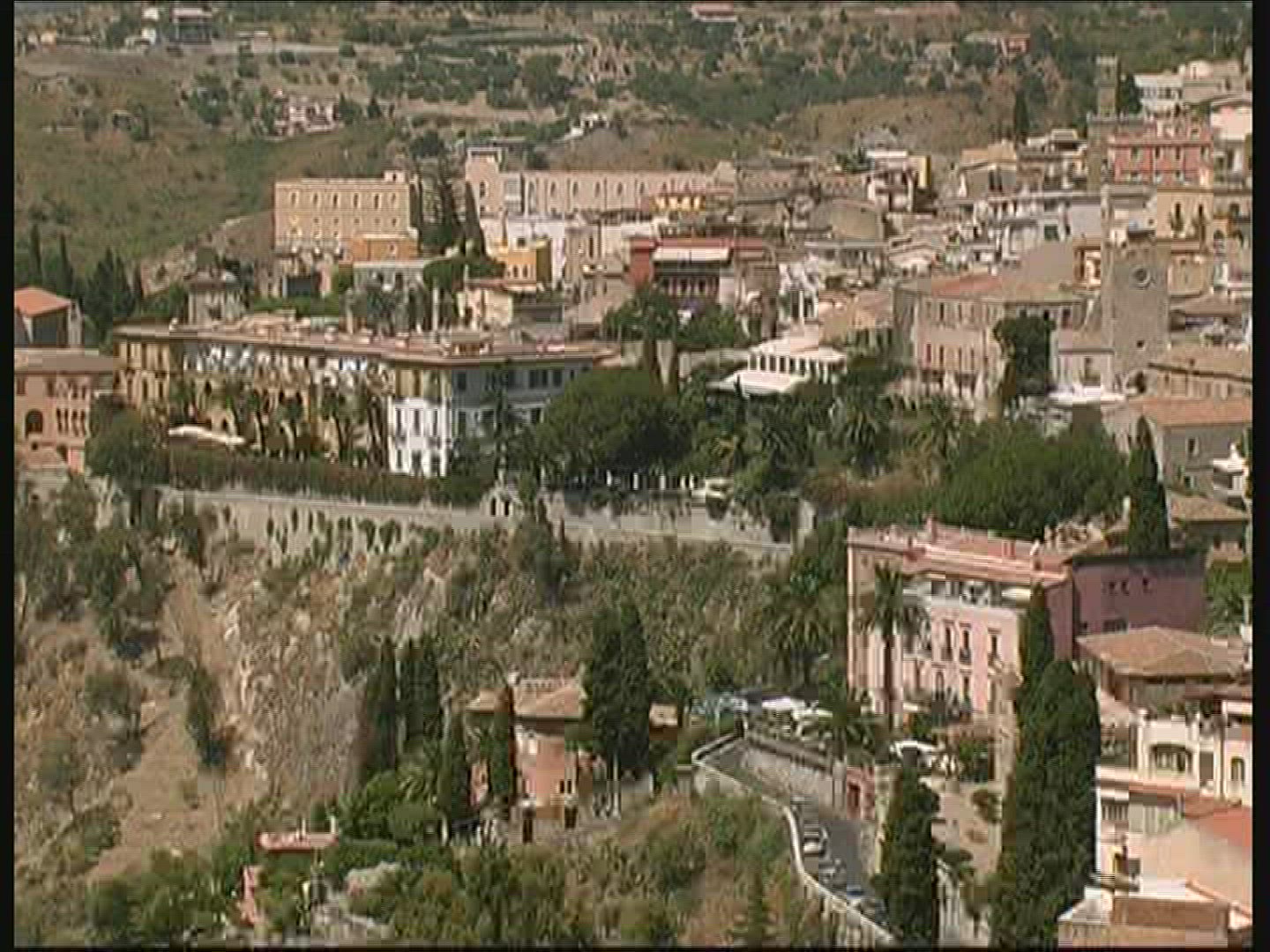 Aerial shot of the Taormina, small town on the east coast of the island of Sicily, Italy
