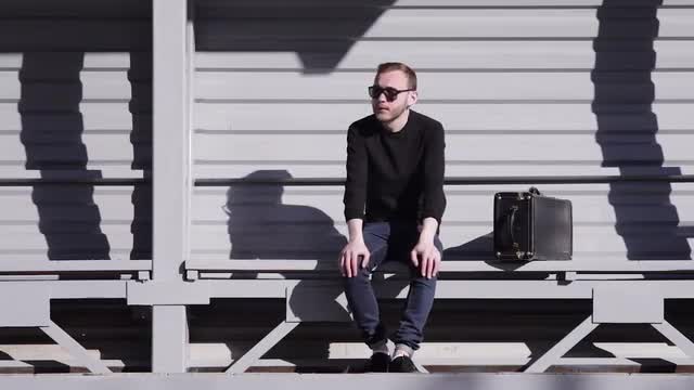 > Man in Sunglasses With Bags Waiting For the Train