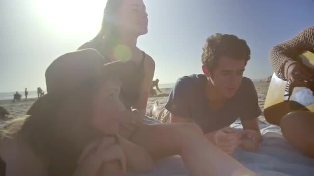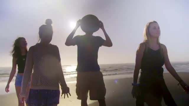 > Teen Friends Pose Together At The Beach For Gopro Vacation Footage