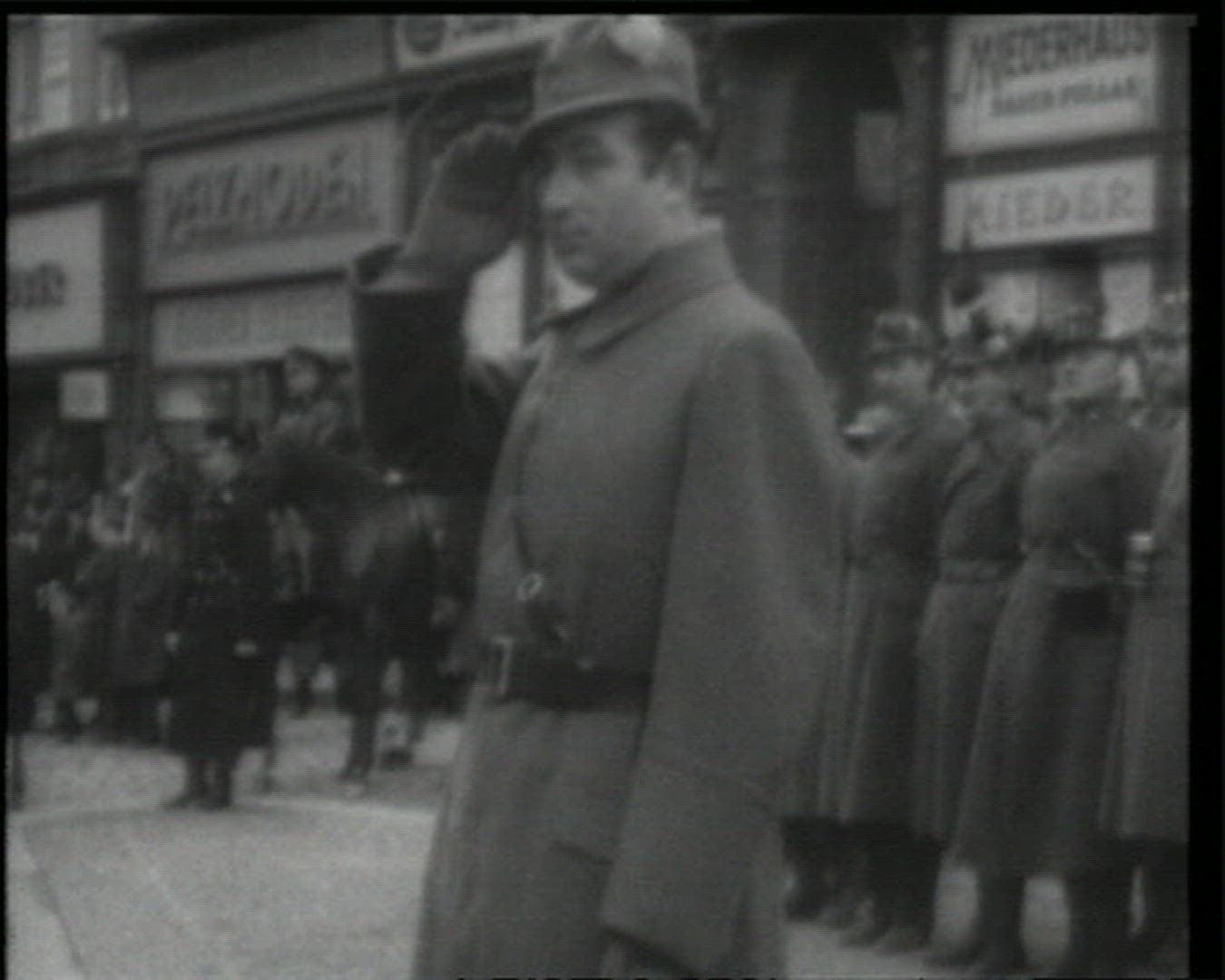 > 1938: Parade marching carrying large statue down middle of street. WASHINGTON, DC