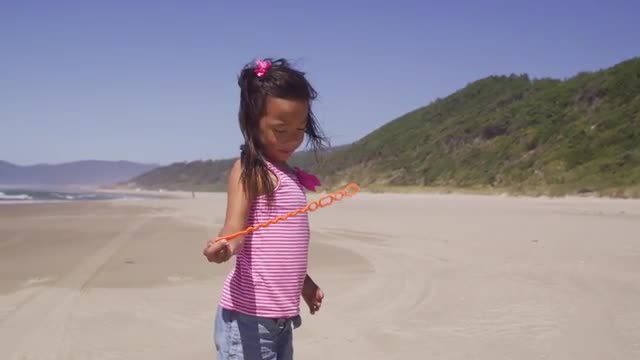 573863 - Fun Teenage Girls Twirl, Walk, Skip Down Beach, Away From Camera