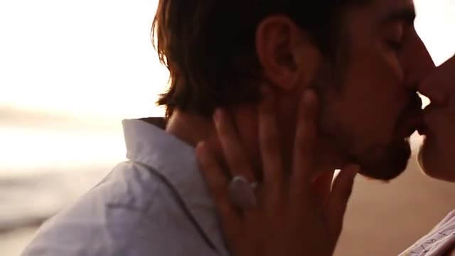 573847 - Teenager Decorates Her Friend's Beautiful Golden Wavy Hair With Shells, On The Beach