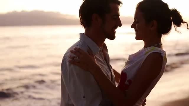 573855 - Teenage Girls Make Sculptures In Sand With Shells, On Beach At Sunset