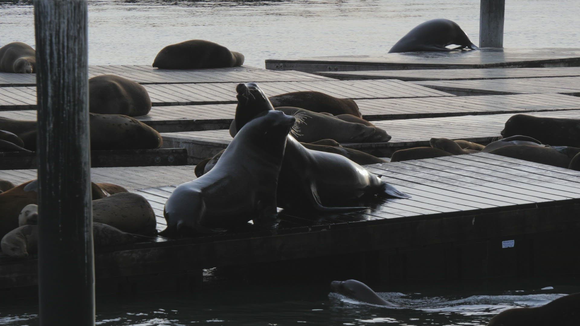 369572 - Pier 39 looking towards Telegraph Hill, the Coit Tower and the business district, Fisherman's Wh