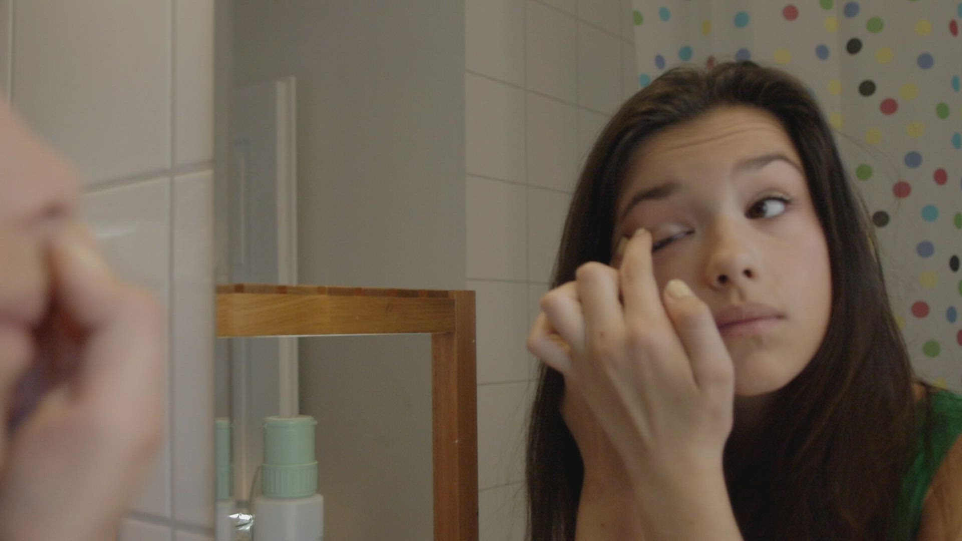 > Young Woman Kisses Her Boyfriend On The Cheek With Freshly Applied Lipstick, They Laugh
