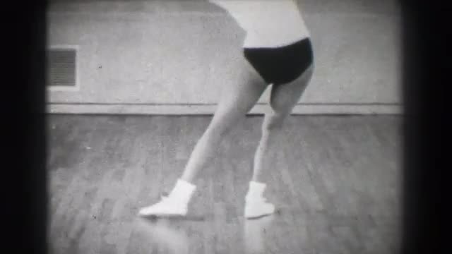 > 1966: Jazz dance moves 8 closeup behind kick stepping shuffle slide. NEW YORK CITY