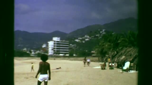 > 1978: High rise resort hotels facing popular tourism crashing wave beach. ACAPULCO, MEXICO