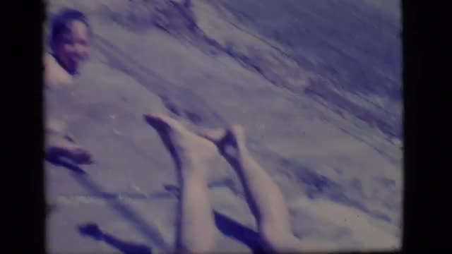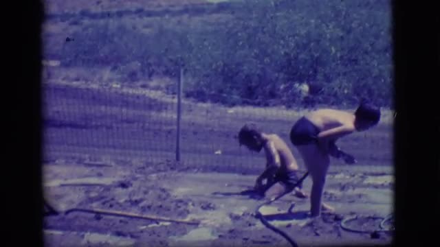 991078 - Boy and girl running through mud puddle in slow motion