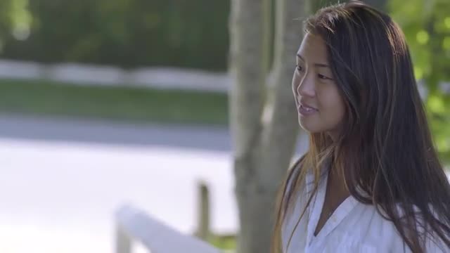 > Couple Enjoy The View From St Johns Bridge, Woman Points To Something