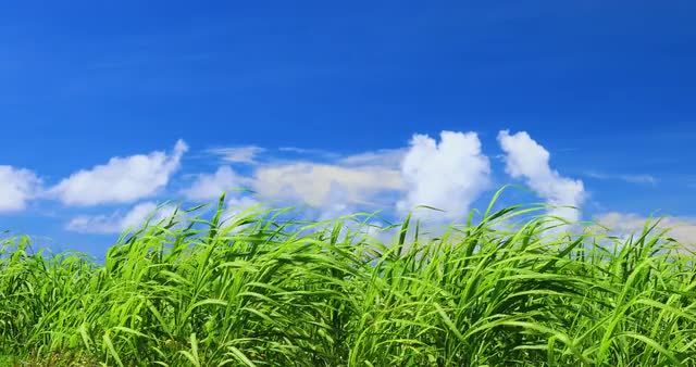 163817 - Strong winds blow through a field of tall grass.