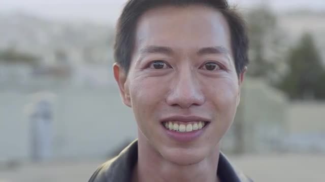 > Young Man Poses And Makes Funny Faces, Then Laughs, In Front Of Flashing Sign (4K)