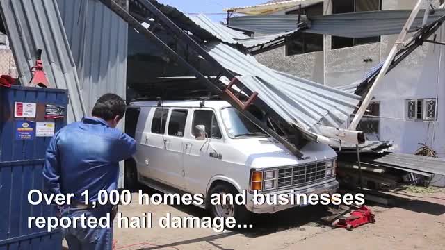 Footage of large hail.