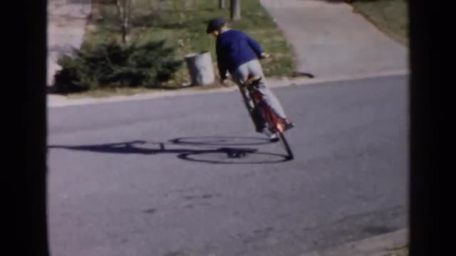 717156 - 1957: three kids are doing cycle riding fast on the main road at morning time alone. BIRMINGHAM ALAB